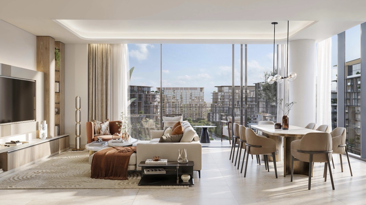 The residences at Crestlane 1 range from thoughtfully designed 1- to 3-bedroom apartments to expansive duplexes and exclusive penthouses. Interiors are crafted with high-quality finishes, open layouts, and large windows that frame panoramic park, water, and skyline views. Select homes feature double-height living spaces, private terraces, and seamless indoor-outdoor flow. From hotel-style arrival experiences to double-height lobbies filled with natural light, every detail reflects Meraas’ signature approach to refined, contemporary urban living.